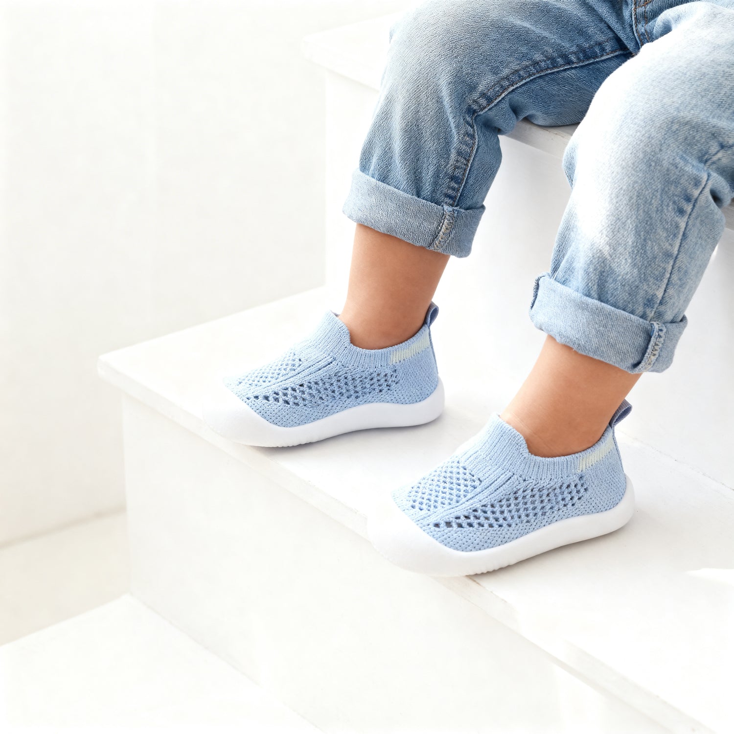 Små fötter förtjänar det bästa. Våra hybrid-sneakers kombinerar komforten hos en mjuk strumpa med skyddet från en riktig sko. De är tillverkade i en ventilerande bomullsmix som låter huden andas, vilket eliminerar klåda och obehag under långa dagar på förskolan.